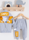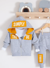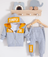 3-6-9-12-18 Ay Erkek Bebek Takımı Simply Desenli Kapişonlu 3'lü Hardal