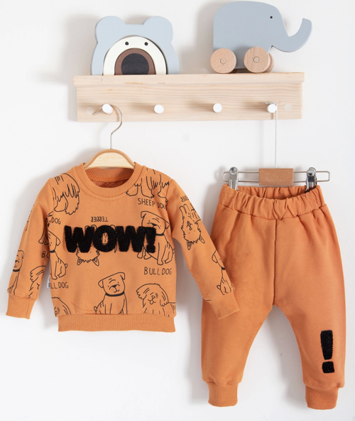 Candar 3-18 Ay Erkek Bebek Takımı Wow Nakışlı 2'li Turuncu