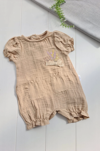 Kahverengi müslin kumaşlı kız bebek tulumu 3-18 ay arası bebekler için uygundur %100 pamuklu olup, çiçek nakışlıdır Doğal kumaşı ile bebek cildine zarar vermez ve konforlu bir kullanım sağlar