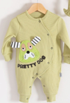 Yeşilin huzurlu tonu ve sevimli Pretty Dog nakışı kız bebeğiniz için ideal bir seçim. Bandanalı tasarımı sayesinde şıklık ve konforu bir arada sunan bu tulum, %100 pamuk yapısı ile dikkat çekiyor.