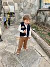 3-4-5 Yaş Fitilli Kadife Pantolon Kapitone Kapşonlu Yelek Uzun Kollu Sweat 3lü Erkek Çocuk Takımı La