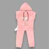 3-4-5 Yaş Kapşonlu Payetli Mickey Desenli Kısa Kol 2li Kız Erkek Çocuk Takımı Gül Kurusu