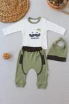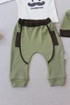 Beruflic 3-6 6-9 9-12 Ay Gentleman Erkek Nakışlı Şapkalı Uzun Kollu Sweat 3lü Erkek Bebek Takımı Yeşil