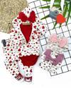 3-6-9-12 Ay Kulak Fiyonklu Kapşonlu Kalp Baskılı 3lü Kız Bebek Takımı Kırmızı