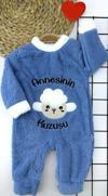 3-6-9-12 Ay Kuzu Tüylü Kumaş Annesinin Kuzusu Nakışlı Alttan Çıtçıtlı Kız Erkek Bebek Tulumu Mavi