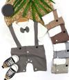 Beruflic markasının şıklığı ve konforu bir araya getiren erkek bebek tulumu, papyon detayı ve çizgili salopet görünümü ile dikkat çeker.