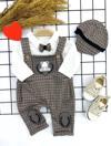 3-6-9-12 Ay Papyonlu Kırçıl Nakış Detaylı Kasket Şapkalı Uzun Kollu 3lü Erkek Bebek Salopet Takımı B