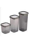 3 Adet 3 Boy Plastik Kavanoz Saklama Kabı Kapaklı Kare Model