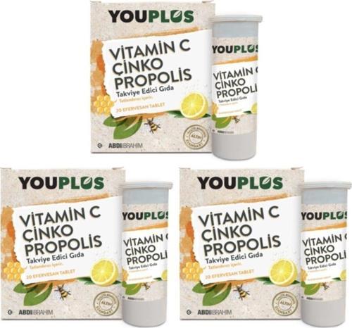 3 Adet Youplus Vitamin C, Çinko, Propolis Efervesan Tablet Takviye Edici Gıda