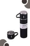 Paslanmaz çelikten üretilen 500 ml kapasiteli vakumlu termos seti, 12 saate kadar sıcak ve soğuk içecekleri ideal ısı seviyelerinde tutma özelliğine sahiptir.