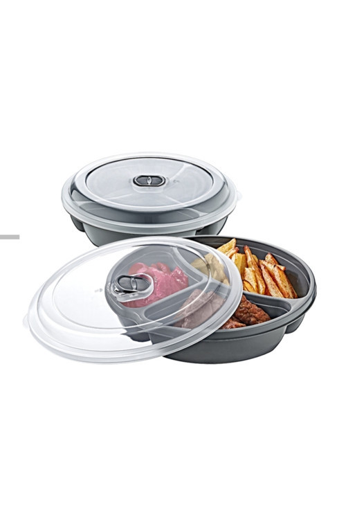 Dayanıklı plastik malzemeden üretilmiş olup, uzun ömürlü kullanım sunar Üç bölme tasarımı sayesinde farklı yiyecekleri ayrı ayrı saklama imkanı sağlar, düzeni korumanıza yardımcı olur Tek parça halinde gelen bu mikrodalga saklama kabı, kolayca temizlenebilir ve pratik bir kullanım sunar