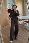 Ka Hijab 3 Boyutlu Çiçek Detay Kot Takım - Kahverengi