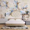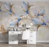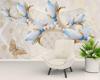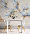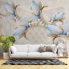 3 Boyutlu Mavi Çiçek Ve İnci Desenli Duvar Kağıdı
