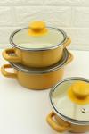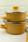 3 lü Lüks Emaye Mini Tencere Seti Sarı 12/14/16cm