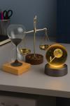 3’lü Masaüstü Dekorasyonu Adalet Terazisi Kum Saati ve Aya Tırmanan Astronot Figürlü Led Işıklı Küre