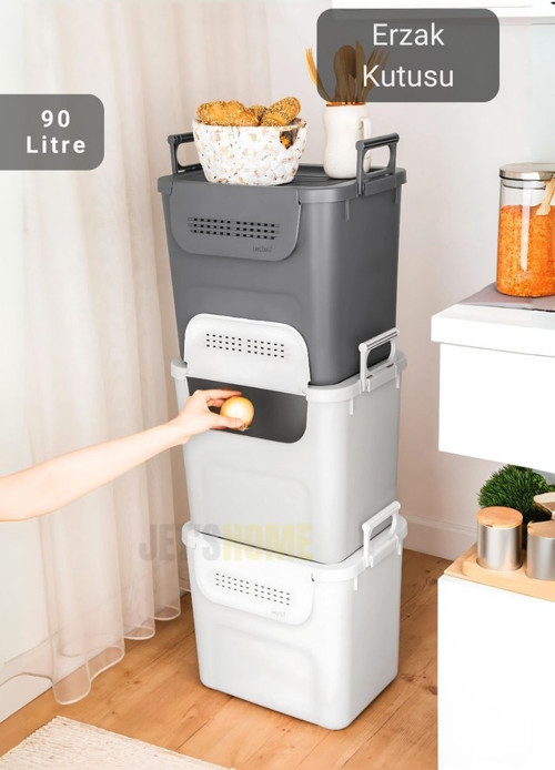 3'lü Patates Soğan Sepeti - 90 Lt Havalandırmalı Erzak Kutusu, Oyuncak Kutusu ve Çok Amaçlı Kutu