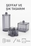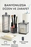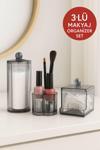 Bu üçlü organizer seti sayesinde tüm makyaj malzemelerinizi, pamuklarınızı ve kulak çubuklarınızı tek bir yerde toplu şekilde saklayabilirsiniz.
