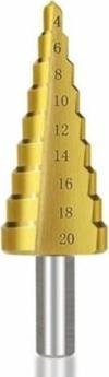 Çift yiv sistemi ile çatlamadan kesim. 1. Delgi : 4, 6, 8, 10, 12 mm 2. Delgi : 4, 6, 8, 10, 12, 14, 16, 18, 20 mm 3. Delgi : 4, 6, 8, 10, 12, 14, 16, 18, 20, 22, 24, 26, 28, 30, 32 mm Normal HSS uçlara oranla 6 kata oranla daha dayanıklı kalay kaplama.