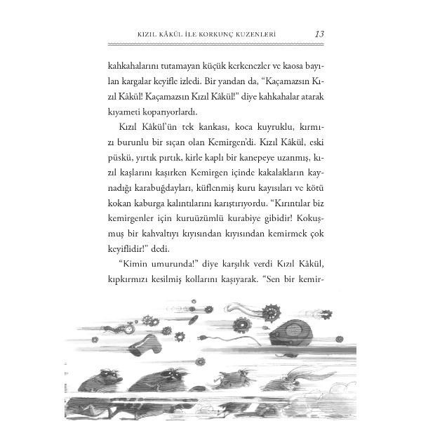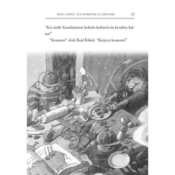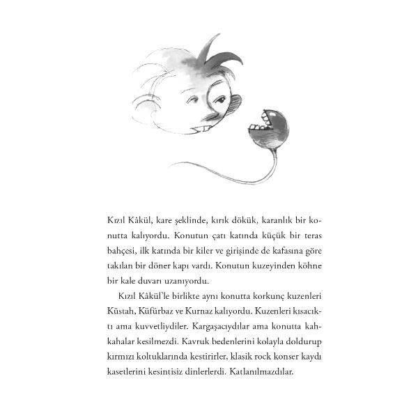 Kafiye, mizah ve yaratıcılığın el ele olduğu bu masallarda olaylar kimi zaman bir mutfakta başlıyor, kimi zaman bir çamaşırhanede… Kızıl Kâkül ve korkunç kuzenleri, Bahtsız Bebek ve Bezgin Begonya, Solgun Simalı