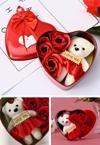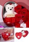 Adm Store 3 Yapay Gül ve Mini Ayıcık Metal Kalp Kutuda Sevgiliye Hediye Mini Ayıcık ve 3 Yapay Gül Hediye Kutu