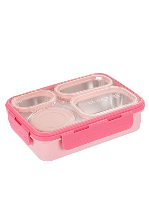 304 Çelik Pembe 950 ml 4 Bölmeli Öğrenci Ofis Yemek Mama Kabı Sefertası cin864pm
