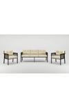 Oturma grubu olarak tasarlanmış olup, balkon, bahçe ve kafe gibi açık alanlarda konforlu bir oturma deneyimi sağlar.