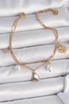 Stil Love 316L Çelik Gold Renk 2'li Zincir Model Sallantı Kalp Figür Yonca Detay Kadın Bileklik SL11613