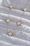 316L Çelik Gold Renk Beyaz Yonca Model Kadın Kolye - Image 1