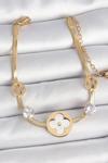 Butik 316L Çelik Gold Renk İtalyan Zincir Beyaz Mineli Yonca Model Zirkon Taş Detaylı Kadın Bileklik
