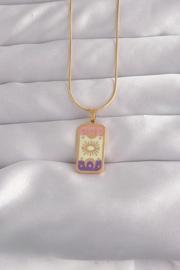 316L Çelik Gold Renk Karışık Mineli Ay Figür Tarot Kolye