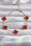 316L Çelik Gold Renk Kırmızı Mineli Yonca Bileklik
