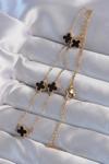 Skygo 316L Çelik Gold Renk Minimal Siyah Mineli Yonca Kolye