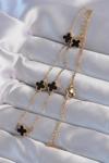 316L Çelik Gold Renk Minimal Siyah Mineli Yonca Kolye