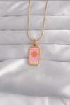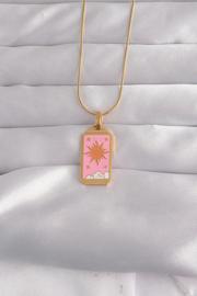 316L Çelik Gold Renk Pembe Mineli Güneş Model Tarot Kolye