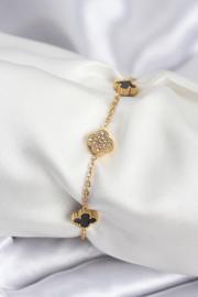 Tahtakale Toptancı 316L Çelik Gold Renk Siyah ve Zirkon Taşlı Baby Boy Yonca Kadın Bileklik
