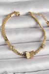316L Çelik Gold Renk Yassı Zincir Zirkon Taşlı Simli Kelebek Figür Kadın Bileklik