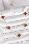 Tahtakale Toptancı 316L Çelik Gold Renk Zincir Bordo Yonca Model Kadın Kolye