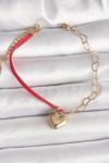 Skygo 316L Çelik Gold Renk Zincir Kırmızı İp Model Sallantı Kalp Figür İşleme Detaylı Kadın Bileklik