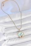 316L Çelik Gold Renk Zincir Mavi Mineli İnci Çiçek İşlemeli Zirkon Taş Detaylı Madalyon Model Kadın Kolye