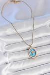 Skygo 316L Çelik Gold Renk Zincir Mavi Mineli İncili Zirkon Taşlı Çiçek İşlemeli Portre Model Kadın Kolye
