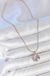 Skygo 316L Çelik Gold Renk Zincir Mor Çiçek İşlemeli Zirkon Taş İnci Detaylı Minimal Portre Model Kadın Ko