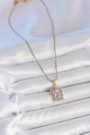 Stil Love 316L Çelik Gold Renk Zincir Mor Mineli Çiçek İşlemeli Zirkon Taşlı Kelebek Detay Portre Model Kadın Kolye SL11725