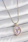 Skygo 316L Çelik Gold Renk Zincir Mor Mineli İncili Zirkon Taşlı Çiçek İşlemeli Portre Model Kadın Kolye