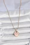 316L Çelik Gold Renk Zincir Pembe Çiçek İşlemeli İnci Detay Portre Model Kadın Kolye