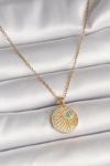 316L Çelik Gold Renk Zincir Zirkon Taş İşlemeli Mavi Taş Detaylı Madalyon Model Kadın Kolye