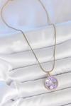 Stil Love 316L Çelik Gold Renk Zincir Zirkon Taşlı Mor Mineli Çiçek İşlemeli İnci Detay Portre Model Kadın Kolye SL11673
