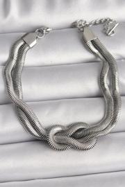 Gümüş rengindeki düğüm modeli, bilekliğe sofistike bir hava katıyor.