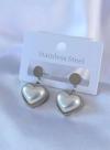 316L Çelik Gümüş Renk İncili Kalp Model Kadın Küpe