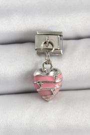 316L Çelik Gümüş Renk Pembe Kalp Model Nomination Charm