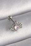 316L Çelik Gümüş Renk Pembe Mineli Kalp Zirkon Taş Detay Tragus Piercing
